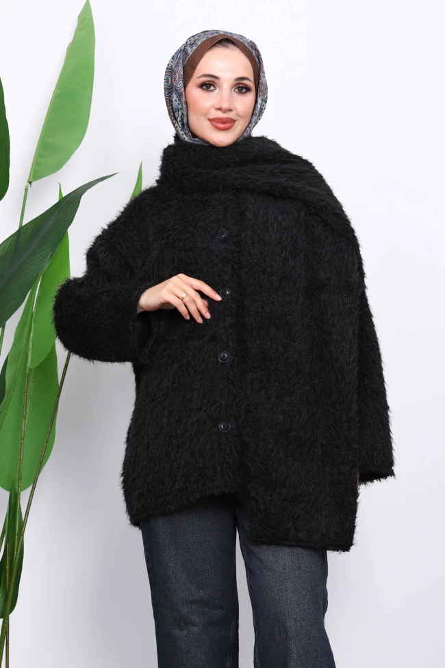 * Ürün Detay : Ürünümüz Angora kumaştan üretilmiştir. Ön kısmı düğmeli olup, atkı detayı ayrı olarakta kullanılabilir.