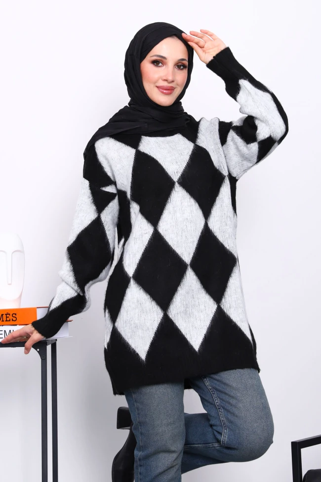 Yeşil Baklava Desenli Triko Kazak Bordo Baklava Desenli Triko Kazak Kırmızı Baklava Desenli Triko Kazak Lacivert Baklava Desenli Triko Kazak Bisküvi Baklava Desenli Triko Kazak