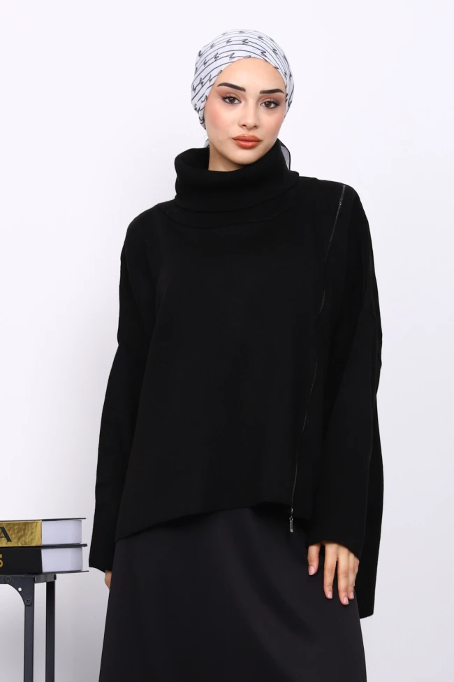 * Ürün Detay : Ürünümüz Triko Kumaştan Üretilmiştir. Tek omuz kısmından etek uç kısmına kadar fermuarlıdır. Arka kısmı ön kısmından uzundur.
