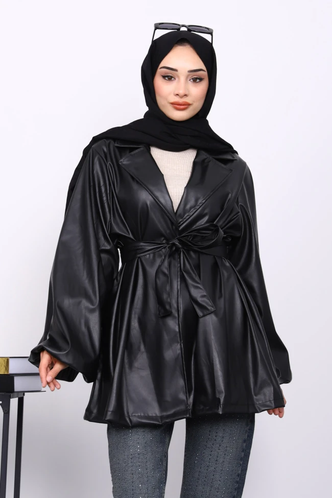 Taba Balon Kol Kuşaklı Deri Ceket Haki Balon Kol Kuşaklı Deri Ceket Lacivert Balon Kol Kuşaklı Deri Ceket Bej Balon Kol Kuşaklı Deri Ceket