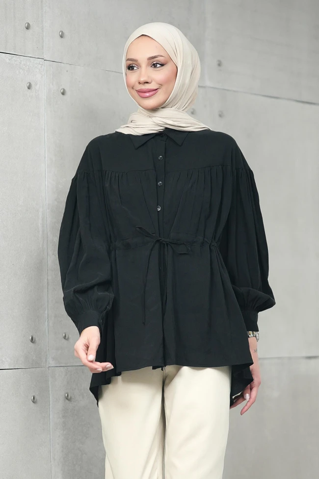 * Ürün Detay :Tunik, özellikle ilkbahar ve yaz ayları için hem ferah hem de stil sahibi bir seçenek sunuyor.Tunik, asimetrik bir kesime sahip. Bu detay, hem modern bir hava katıyor hem de ekstra kapatıcılık sağlıyor.Göğüs altındaki büzgü detayları ve beldeki ince bağcık, tuniğin formunu kişiselleştirmene olanak tanıyor.Balon kol yapısı ve manşetler, parçaya feminen ve hareketli bir dokunuş eklemiş.