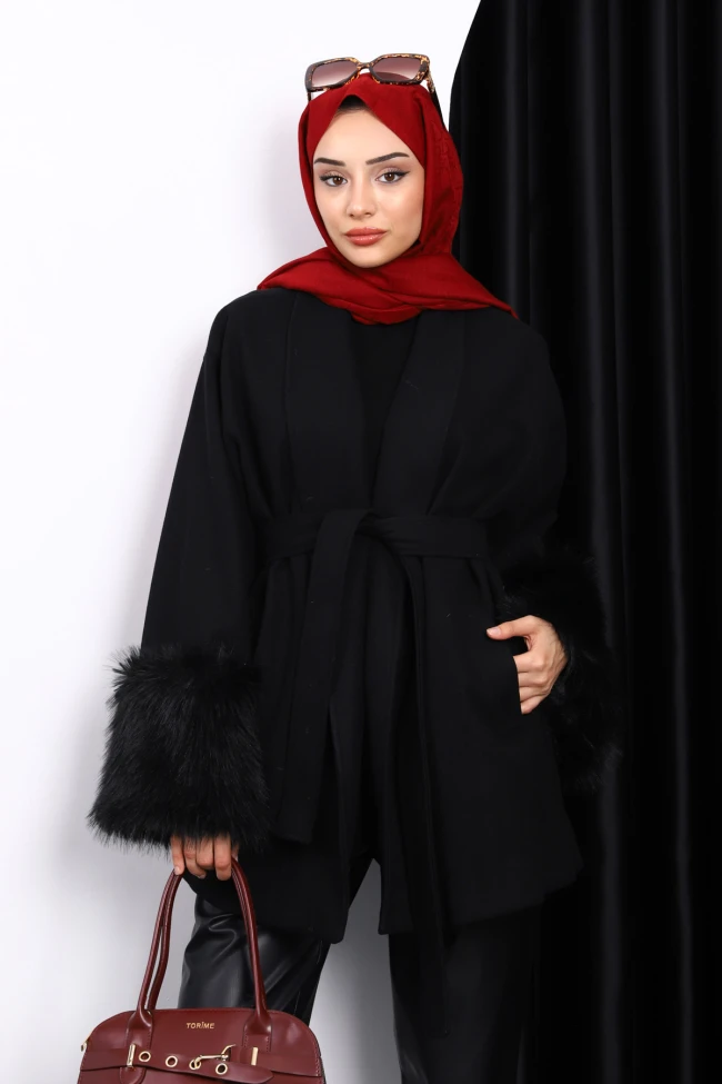 * Ürün Detay : Ürünümüz Kaşe Kumaştan Üretilmiştir. Bel kısmı kuşaklı olup, yan kısımlarında cepler bulunmaktadır. Kol uç kısımlarında yer alan kürk detayı ürünümüze oldukça modern ve şık bir görünüm katmıştır.