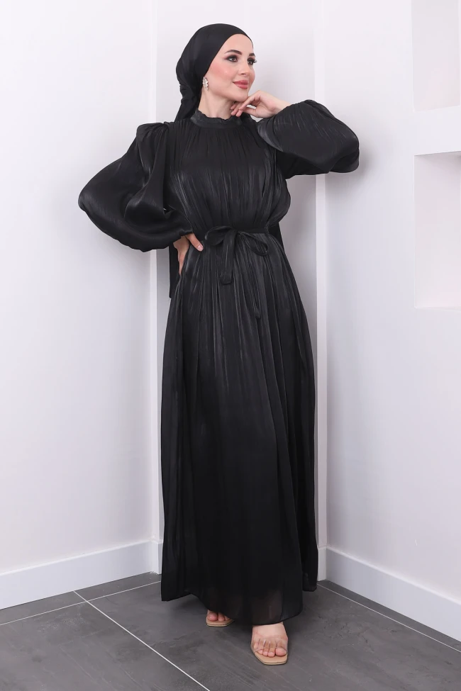 * Ürün Detay : Yeni Sezona Uygun Parlak Şifon Kumaştan üretilmiştir. Bel kuşaklıdır. Astarlıdır. Kolları dökümlüdür.