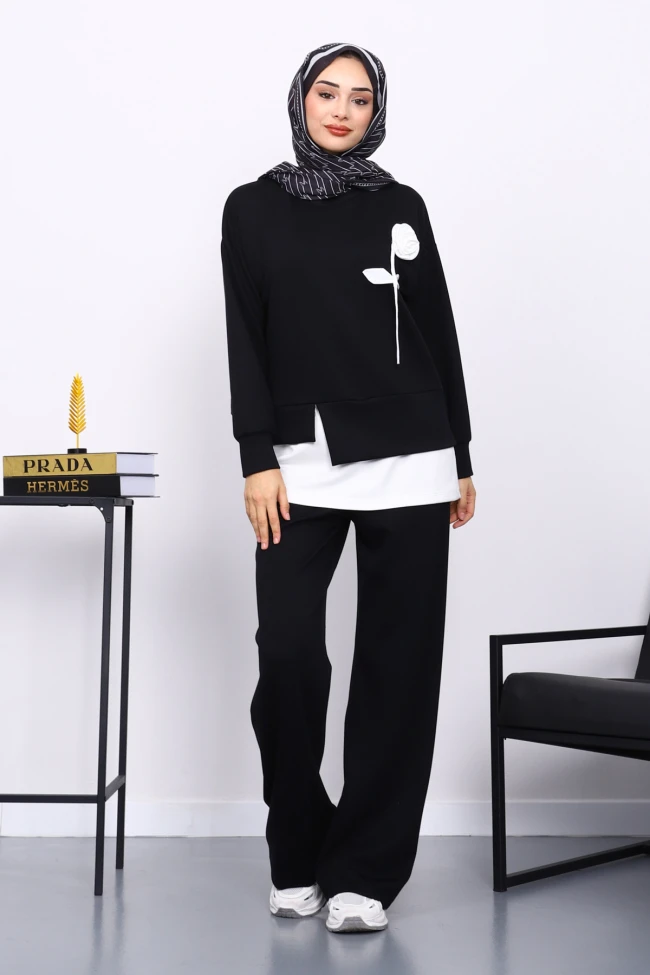 * Ürün Detay : Ürünümüz Modal Kumaştan Üretilmiştir. Tunik ile Pantolon ikili takım şeklindedir. Tunik göğüs kısmında gül detayı yer almaktadır. Etek uç kısmı ayrı bir parçadan oluşur. Pantolon bel kısmı lastiklidir.