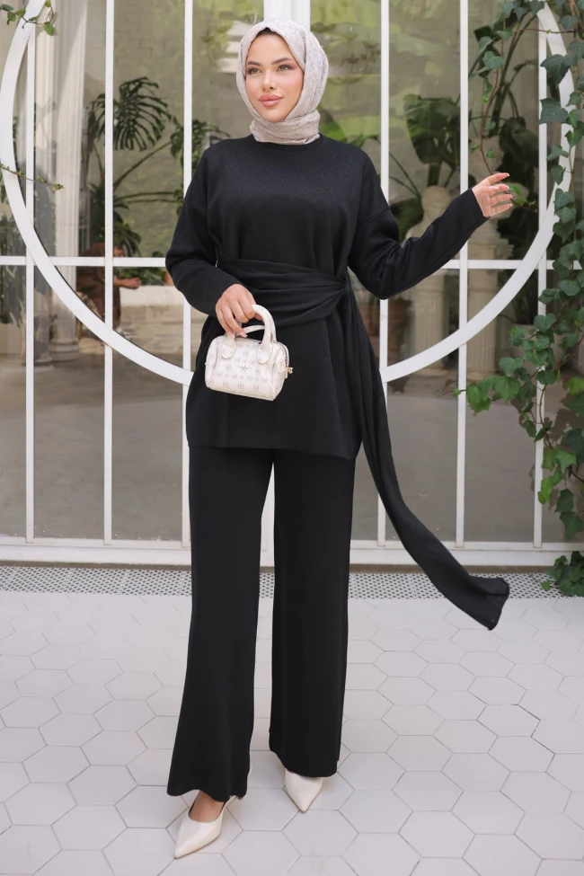 * Ürün Detay : Ürünümüz yeni sezona uygun Simli Modal  kumaştan üretilmiştir. Tunik ile Pantolon ikili takım şeklindedir. Tunik bel kısmı bağlama detaylıdır.