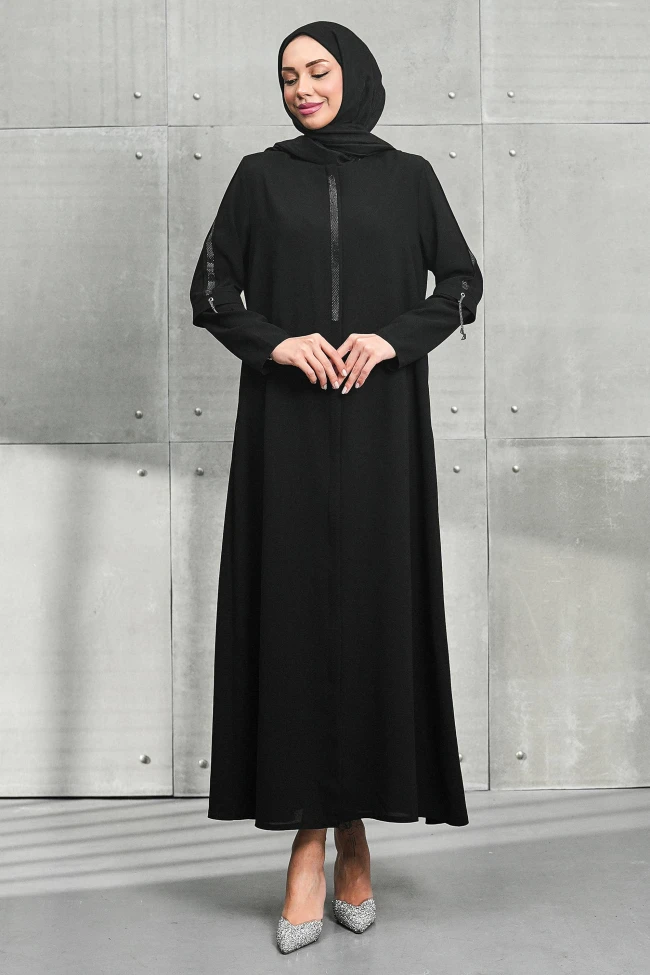 Mürdüm Bisiklet Yaka Taşlı Fermuarlı Ferace Lacivert Bisiklet Yaka Taşlı Fermuarlı Ferace Haki Bisiklet Yaka Taşlı Fermuarlı Ferace
