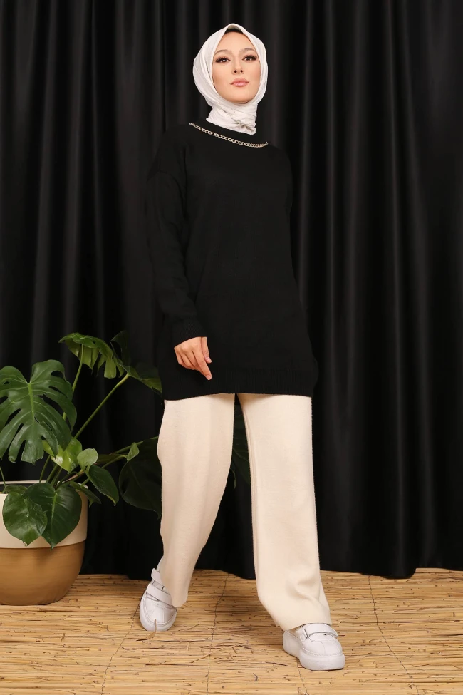 * Ürün Detay : Sade tasarımıyla şıklığı yakalayan tuniğimizin yakasındaki aksesuar detayı göze çarpıyor.Tuniğimiz geniş renk yelpazesine sahiptir.Ürünümüz yeni sezona uygun olarak üretilmiştir.Bisiklet yaka zincir detaylı tesettür triko tunikdir.