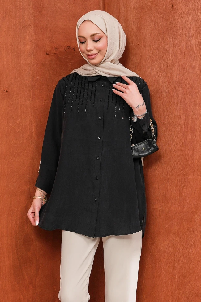 Sarı Boncuk İşlemeli Gömlek Lacivert Boncuk İşlemeli Gömlek Mürdüm Boncuk İşlemeli Gömlek Kahverengi Boncuk İşlemeli Gömlek