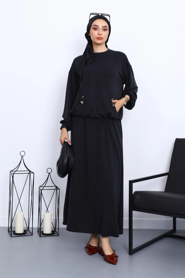 * Ürün Detay : Ürünümüz Pamuklu Modal Kumaştan Üretilmiştir. Bluz ile Etek ikili takım şeklindedir. Bluz ön ceplidir. Etek bel kısmı lastiklidir.