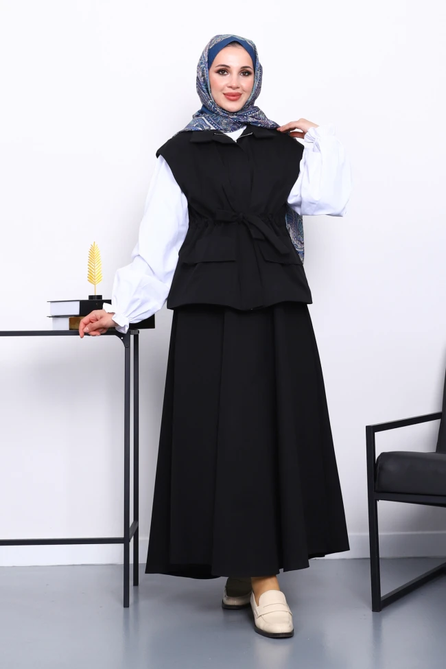 Lacivert Cepli Yelek Etekli Bondit Takım Bordo Cepli Yelek Etekli Bondit Takım Haki Cepli Yelek Etekli Bondit Takım
