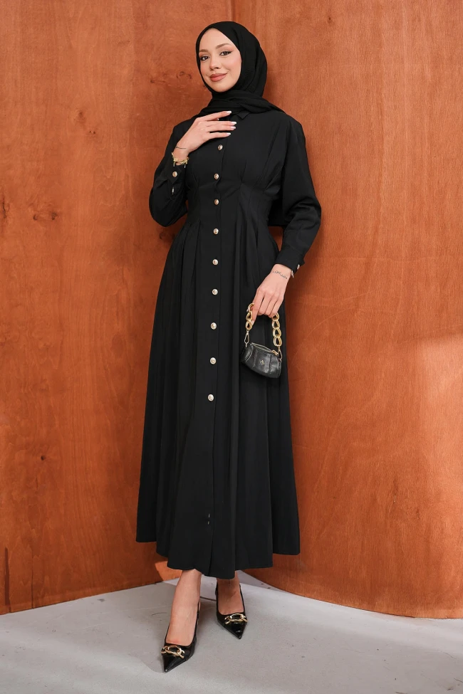 * Ürün Detay : Zarafeti ve konforu bir araya getiren bu özel tasarım elbise, gardırobunuzun en joker parçası olmaya aday. Modern kesimi ve dikkat çekici detaylarıyla hem günlük şıklığınızda hem de özel davetlerde stilinizi bir adım öne çıkarıyor.Bel kısmındaki özel kırma doku, vücut hatlarını zarifçe dengelerken feminen bir silüet oluşturur.Ön kısımdaki fonksiyonel düğmeler, elbiseye hem klasik bir hava katar hem de kullanım kolaylığı sağlar.