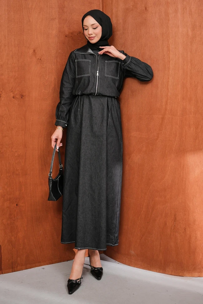* Ürün Detay : Denim tutkunları için yeniden yorumlanan bu ikili takım, hem spor hem de şehirli bir şıklık sunuyor. Kontrast dikiş detayları ve modern kesimiyle sezonun favori parçası olmaya aday bu takım, konforu ve stili bir arada sunuyor.Boydan fermuarlı, yaka detaylı ve göğüs cepli kısa ceket, beli vurgulayan yapısıyla modern bir silüet oluşturur.akımın alt parçasını oluşturan jile elbise, dökümlü kesimi ve dikiş detaylarıyla boyunuzu daha uzun, stilinizi daha yalın gösterir.