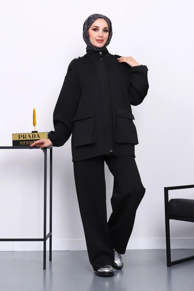 * Ürün Detay : Ürünümüz  Scuba kumaştan üretilmiştir. Ceket ile Pantolon ikili takım şeklindedir. Ceket ön kısmı fermuarlı ve cep detaylıdır. Pantolon bel kısmı lastiklidir.