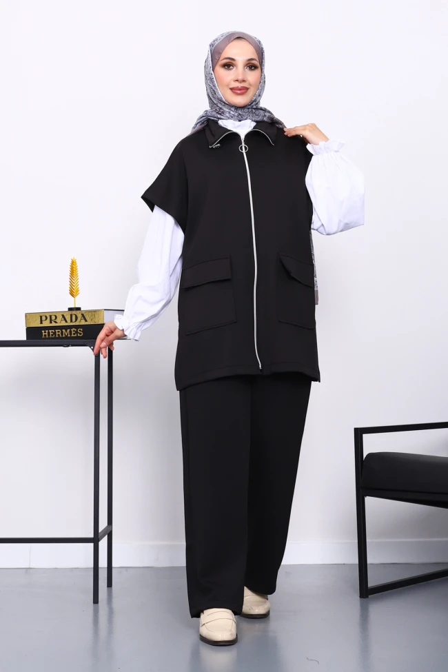 * Ürün Detay : Ürünümüz  Scuba kumaştan üretilmiştir. Yelek ile Pantolon ikili takım şeklindedir. Yelek ön kısmı fermuarlı ve cep detaylıdır. Pantolon bel kısmı lastiklidir.