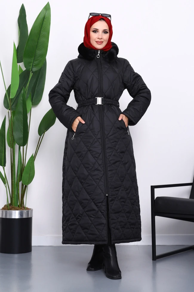 Taba Kapüşonlu Kapitone Uzun Şişme Mont Haki Kapüşonlu Kapitone Uzun Şişme Mont