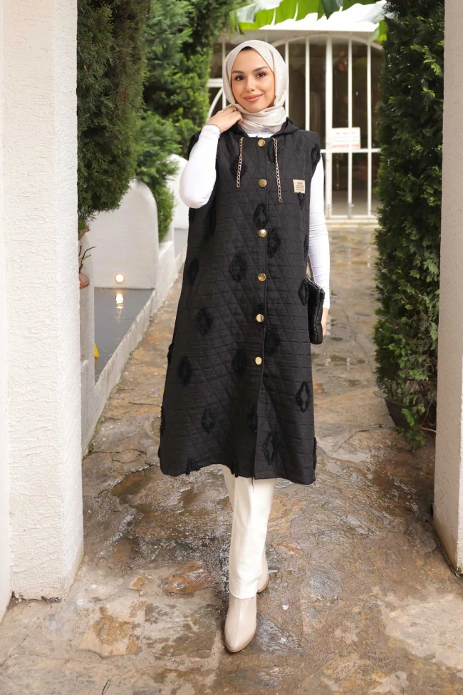 * Ürün Detay : Dış giyim kategorisinin vazgeçilmez parçalarından olan yelek modelimiz sizlerle. Ürünümüz sezona uygun kapitone kumaştan üretilmiştir. Boydan düğmelidir. Zincir detayı ile hoş bir dokunuş sağlanmıştır. Ceplidir ve kapüşonludur. Üzerindeki kabartma desenleri ile modern tarzınıza artı katacaktır.