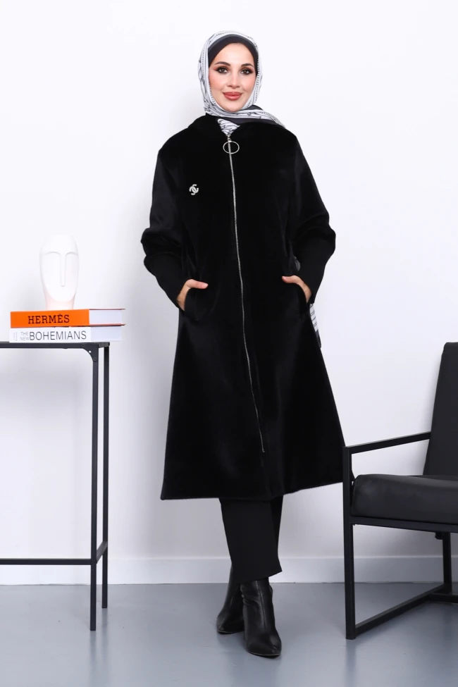 Kahverengi Kapüşonlu Kolları Triko Angora Kaban Krem Kapüşonlu Kolları Triko Angora Kaban Bordo Kapüşonlu Kolları Triko Angora Kaban