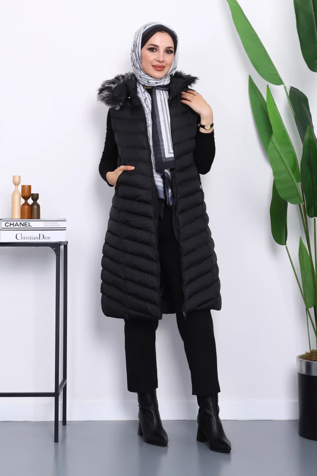 Kahverengi Kapüşonlu Uzun Şişme Yelek Antrasit Kapüşonlu Uzun Şişme Yelek Bej Kapüşonlu Uzun Şişme Yelek