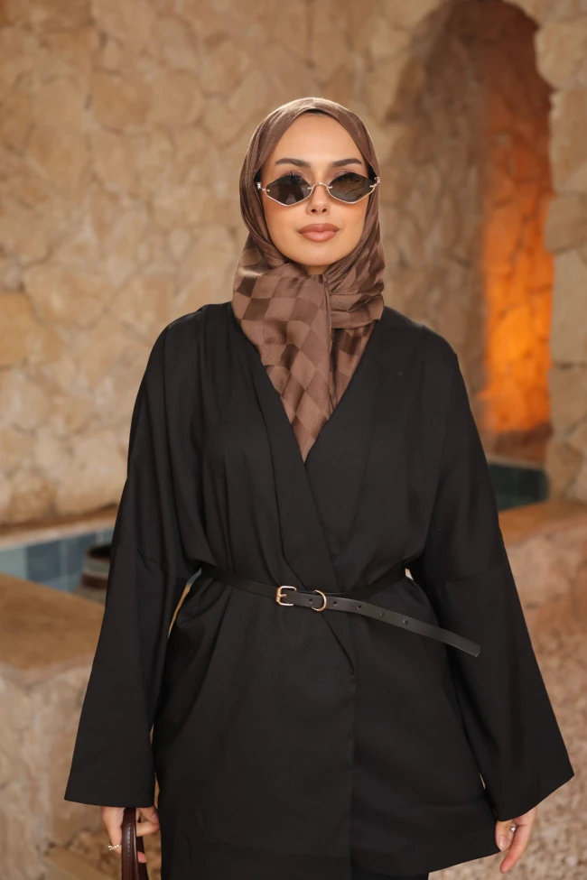 * Ürün Detay : Ceket, minimalist çizgileriyle "sessiz lüks" akımına göz kırpan, oldukça asil bir parça.Ceketin ön kısmındaki geniş üst üste binen yani kruvaze kesim, yakasız tasarımla birleşerek boyun bölgesinde ferah ve modern bir duruş sergiliyor.Geniş ve hafif düşük omuzlu kol yapısı, geleneksel kimono kesimini anımsatıyor. Bu salaşlık, konforu şıklıkla birleştiriyor.Beldeki ince siyah kemer, ceketin oversize dökümünü toparlayarak vücut hatlarını zarifçe ortaya çıkarıyor.