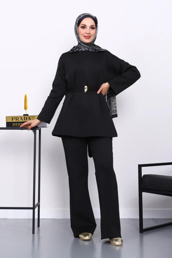 * Ürün Detay : Ürünümüz Scuba Kumaştan Üretilmiştir. Tunik ile Pantolon ikili takım şeklindedir. Tunik bel kuşak aksesuarlıdır. Pantolon bel kısmı lastiklidir.