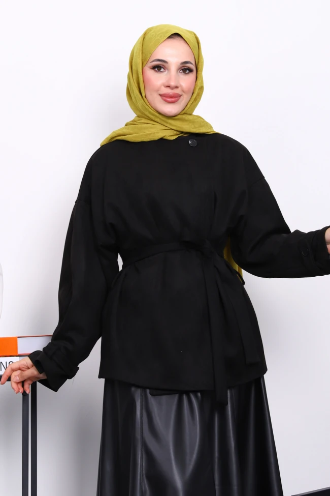 * Ürün Detay : Ürünümüz  Süet kumaştan üretilmiştir.  Bel kısmı kuşaklıdır. Yaka kısmı düğmelidir.