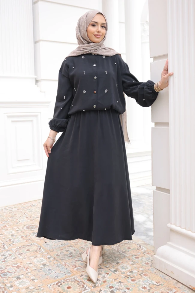 * Ürün Detay : Şık tasarımı ve taş detaylarıyla yeni sezon takım modelimiz sizlerle.Etek ve üst parçanın rahat kesimi, şıklığı konforla birleştirmiş.Üst parçadaki taş işlemeler, düz bir takımı anında "özel gün" veya "şık davet" kategorisine taşımış. İşlemelerin çiçek formunda ve simetrik dağıtılması, tasarıma hareket katarken zarafeti korumuş.Kollardaki büzgülü manşet detayları modern bir dokunuş sağlarken, beldeki lastik kısmı takımın formunu koruyarak daha derli toplu durmasını sağlamış.