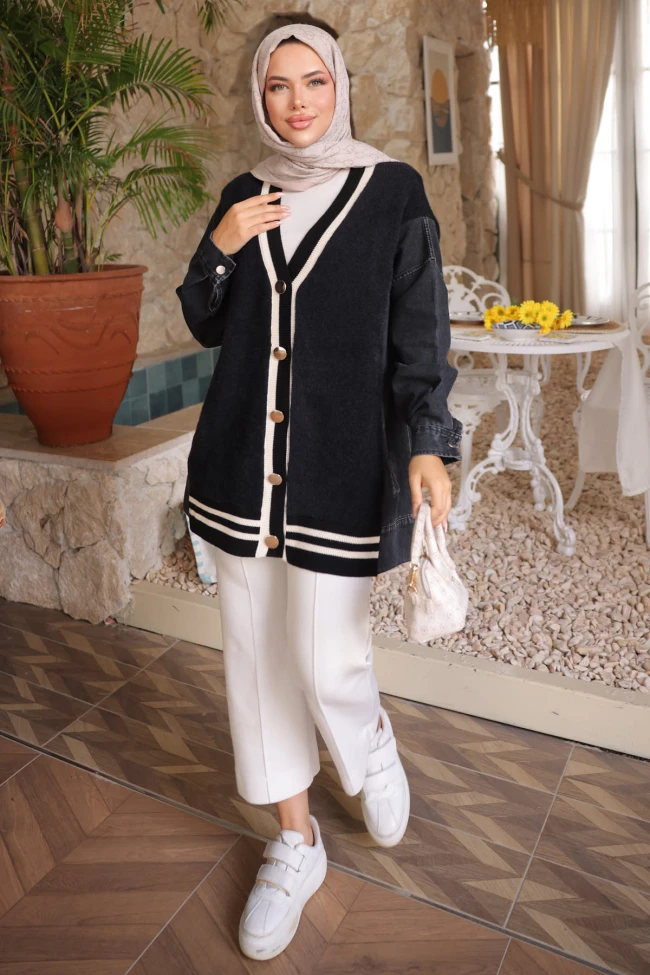 * Ürün Detay : Ürünümüz yeni sezona uygun Kot Garnili Yumoş Triko kumaştan üretilmiştir. Ön kısmı düğme detaylıdır. Kol kısımları kot garnilidir.