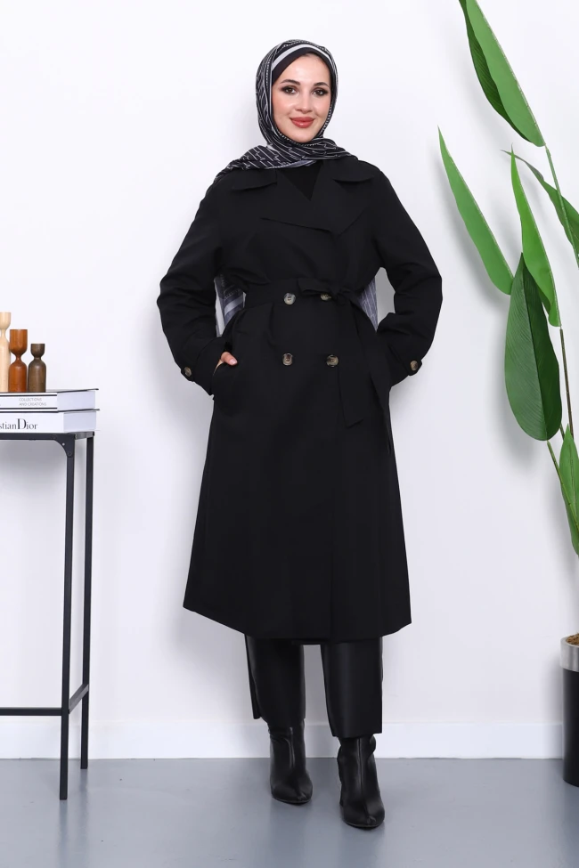 Bisküvi Kruvaze Yaka Astarlı Trençkot