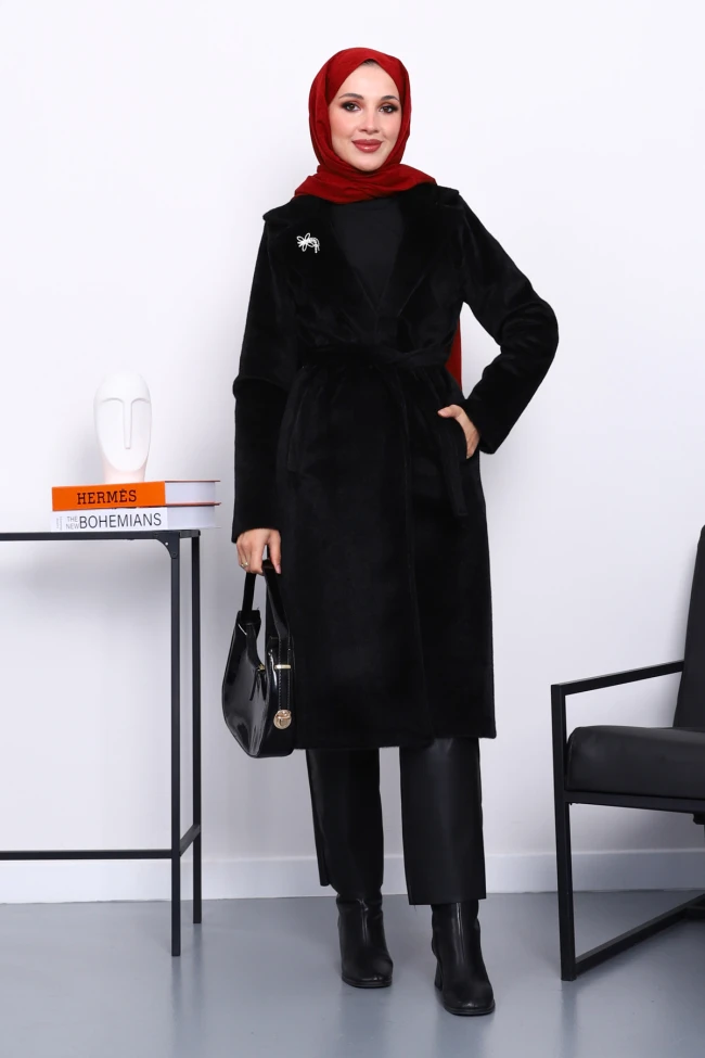 * Ürün Detay : Ürünümüz yeni sezona uygun Angora kumaştan üretilmiştir. Bel kısmı kuşaklı olup, yan kısımları ceplidir. Yaka kısmı broş detaylıdır.