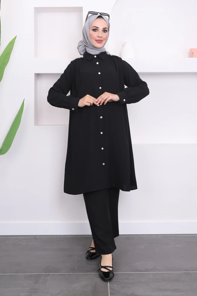 * Ürün Detay : Yeni sezona uygun Krep Kumaştan üretilmiştir. Omuz taşlıdır. Boydan düğme detayı bulunmakta olup gömlek yakadır.