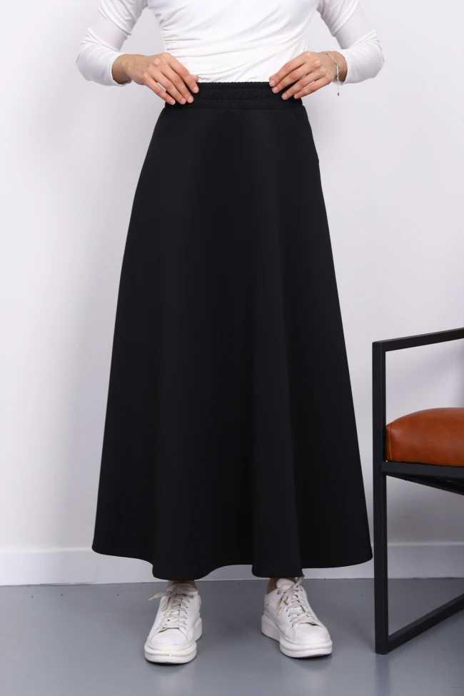 Lacivert Scuba Kloş Etek Ekru Scuba Kloş Etek Kahverengi Scuba Kloş Etek