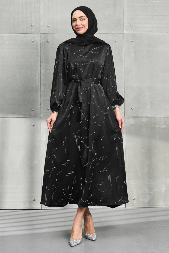 * Ürün Detay : Gecenin yıldızı siz olun! Renklerin asaletini modern ışıltılarla buluşturan bu özel tasarım abiye,özel davetlerinizde konforlu şıklığın anahtarı olacak. Bel vurgusu ve dökümlü kesimiyle zarafeti yeniden tanımlayın!Elbisenin üzerindeki serpme taş detayları, gece boyunca ışığı yakalayarak dinamik bir görünüm sunar.Belden bağlama detayı, her vücut tipine göre ayarlanabilir bir form sağlarken; dökümlü etek yapısı tesettür giyimde aranan konforu ve gizliliği şık bir şekilde sunar.Hafif balon kol yapısı ve lastikli manşetler, elbiseye hem romantik bir hava katar hem de kullanım kolaylığı sağlar.