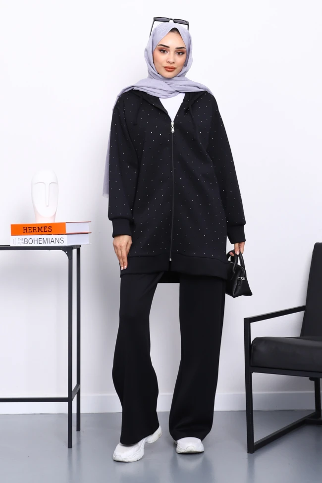 * Ürün Detay : Ürünümüz Scuba Kumaştan Üretilmiştir. Tunik ile Pantolon ikili takım şeklindedir. Tunik taşlı ve fermuarlıdır. Pantolon bel kısmı lastiklidir.