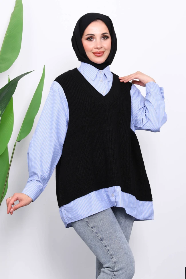 * Ürün Detay : Ürünümüz Triko Garnili Kumaştan Üretilmiştir. Triko yelek gömlek ile bütün şeklindedir.