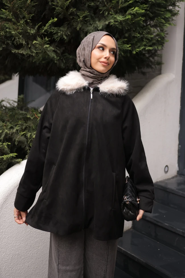 Kahverengi Yaka Kürk Detaylı Süet Ceket Lacivert Yaka Kürk Detaylı Süet Ceket Antrasit Yaka Kürk Detaylı Süet Ceket Bej Yaka Kürk Detaylı Süet Ceket
