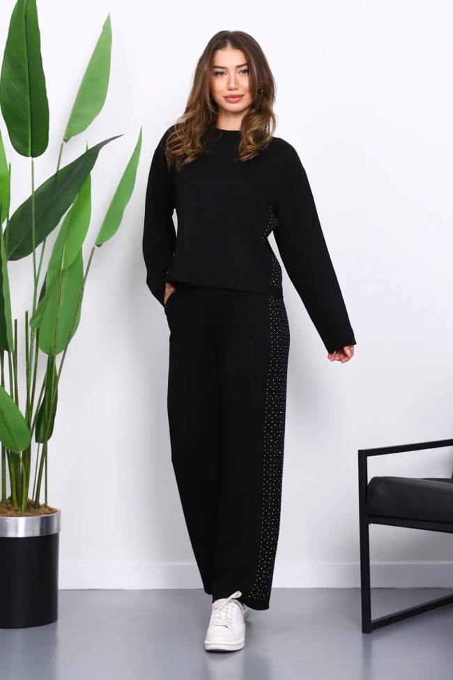 * Ürün Detay : Ürünümüz Modal kumaştan üretilmiştir. Sweat ile Pantolon ikili takım şeklindedir. Pantolon bel kısmı lastikli ve taş detayları yer almaktadır. Cep detaylıdır.