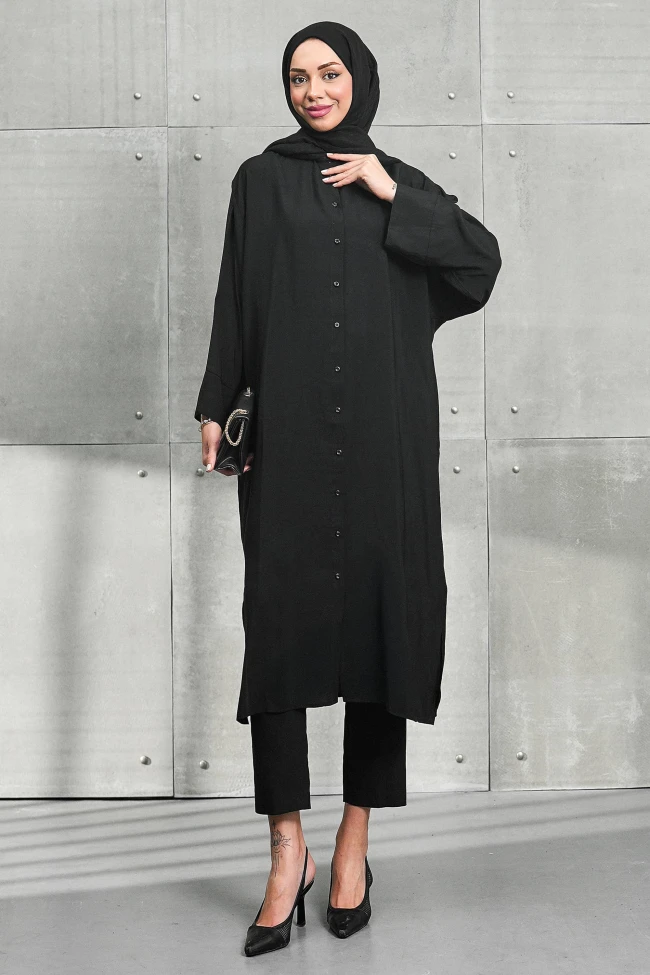 * Ürün Detay : Günün yoğun temposunda şıklığınızdan ödün vermeyin! Geniş kesimi ve nefes alan kumaşıyla size hareket özgürlüğü sunan bu tasarım, konforu lüksle buluşturuyor.Boydan düğmeli olması kullanım kolaylığı sağlarken, yanlardaki yırtmaç detayları hareket özgürlüğünü artırıyor ve modern bir hava katıyor.