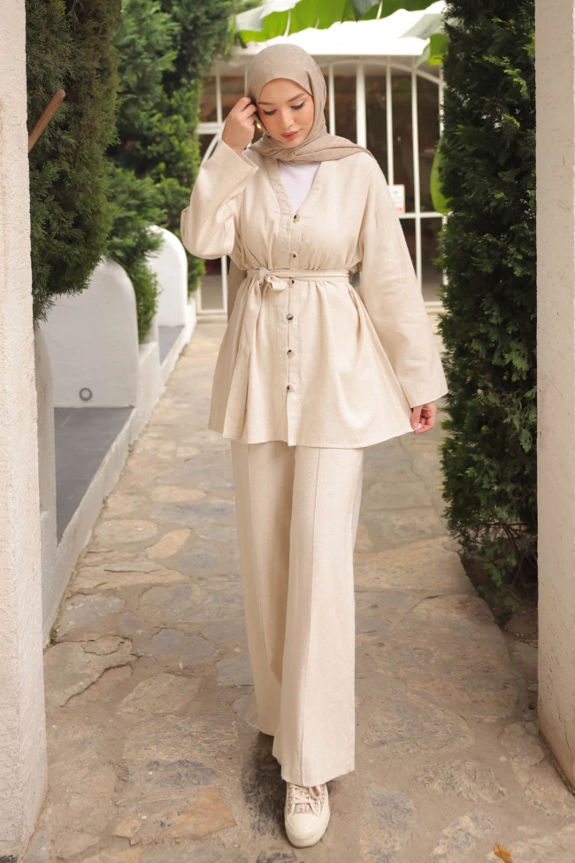 * Ürün Detay : Şıklığından ödün vermeyen hanımlar takımımızda tamda size göre. Tunik ve pantolon 2'li takım şeklinde satıştadır. Yeni sezona uygun keten kumaştan üretilmiştir. Tunik boydan düğmeli ve kuşaklıdır. Renk seçeneği mevcut olan takımımızı kombinlerken hiç zorlanmayacaksınız.