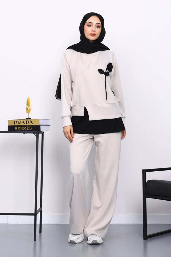 * Ürün Detay : Ürünümüz Modal Kumaştan Üretilmiştir. Tunik ile Pantolon ikili takım şeklindedir. Tunik göğüs kısmında gül detayı yer almaktadır. Etek uç kısmı ayrı bir parçadan oluşur. Pantolon bel kısmı lastiklidir.