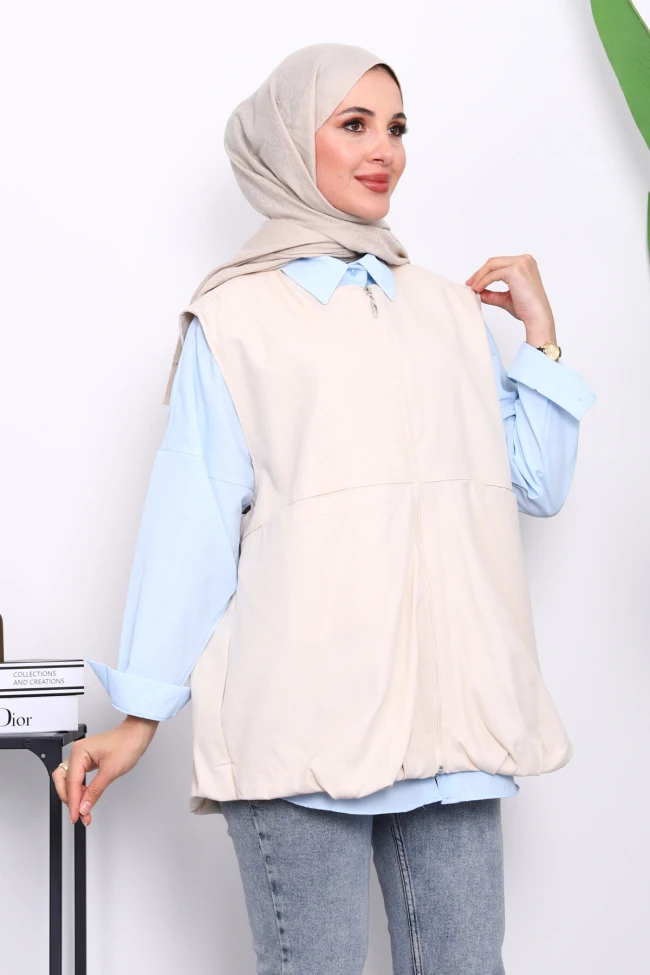 Siyah Fermuarlı Oversize Astarlı Yelek Kahverengi Fermuarlı Oversize Astarlı Yelek Lacivert Fermuarlı Oversize Astarlı Yelek