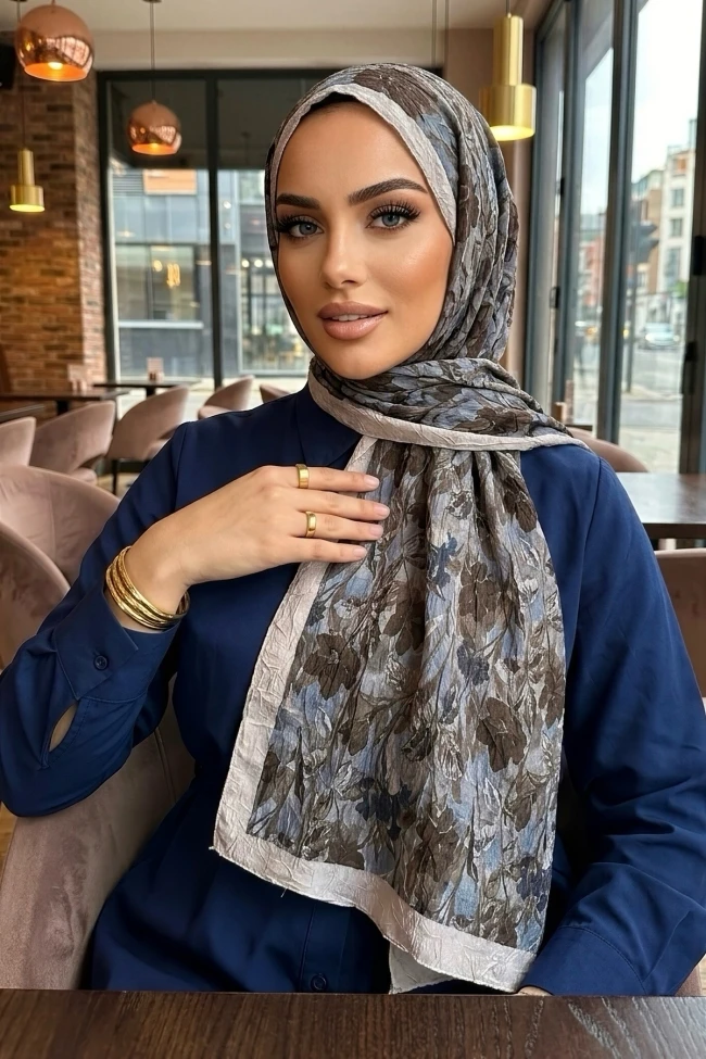 Acı Kahve İpekhan Desenli Kraş Şal Lacivert İpekhan Desenli Kraş Şal Kahve/Vizon İpekhan Desenli Kraş Şal