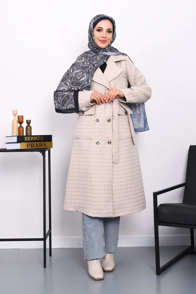 * Ürün Detay : Yeni sezona uygun Kapitone kumaştan üretilmiştir. Ön kısmı düğmeli olup, bel kısmı kuşaklıdır. Yan kısımları cep detaylıdır.