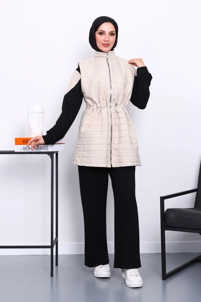 Siyah Kapitone Yelek Tunik Pantolonlu Üçlü Takım Haki Kapitone Yelek Tunik Pantolonlu Üçlü Takım Lacivert Kapitone Yelek Tunik Pantolonlu Üçlü Takım