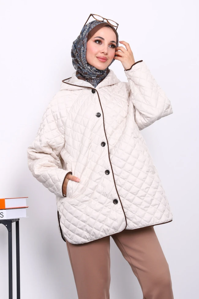* Ürün Detay : Ürünümüz Kapitone Kumaştan Üretilmiştir. Ön kısmı düğmeli ve cep detayları yer almaktadır. Kapüşonlu olarak tasarlanmıştır.
