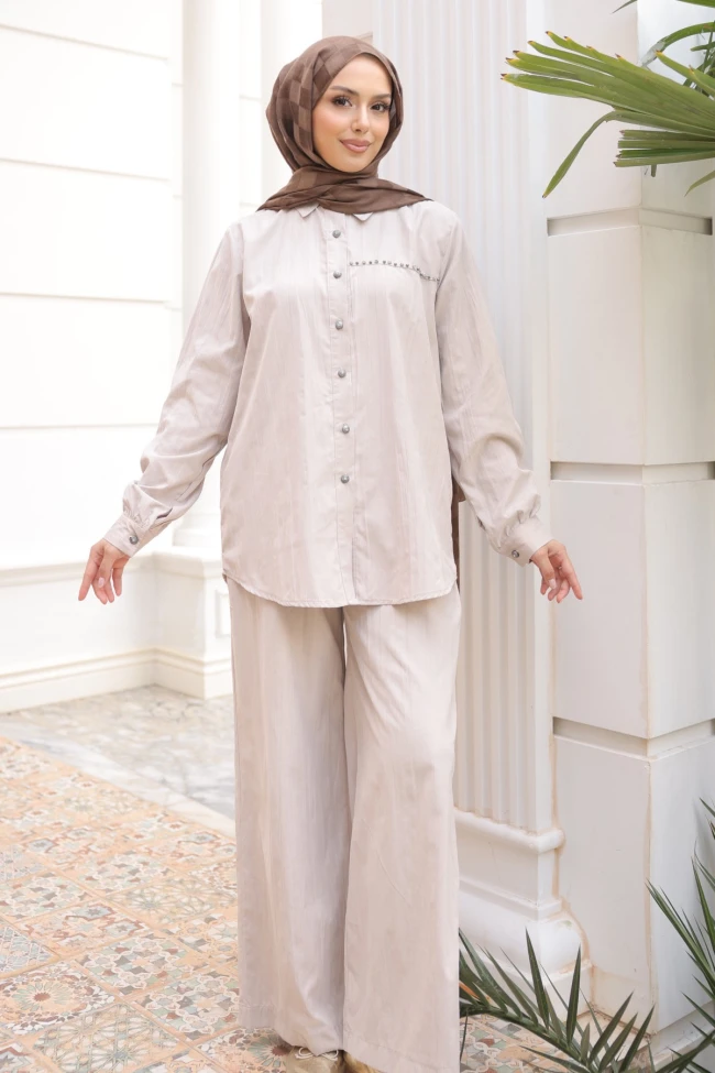 Siyah Önü Taş Detaylı Düğmeli Tunik Pantolonlu Takım Kahverengi Önü Taş Detaylı Düğmeli Tunik Pantolonlu Takım Lacivert Önü Taş Detaylı Düğmeli Tunik Pantolonlu Takım Bej Önü Taş Detaylı Düğmeli Tunik Pantolonlu Takım