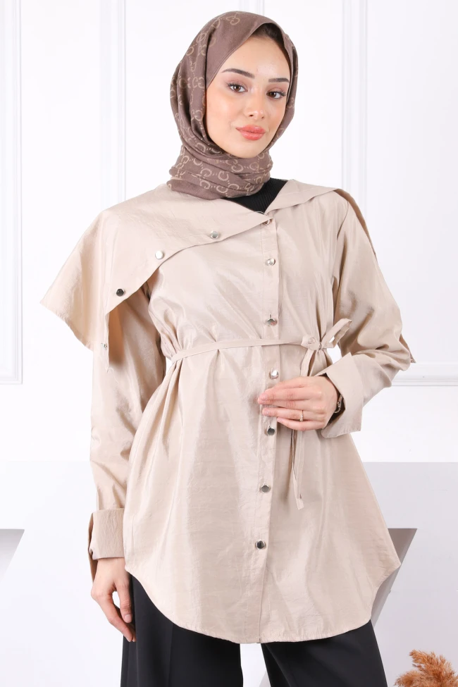 * Ürün Detay : Yeni sezona uygun Modal Kumaştan Üretilmiştir. Ön kısmı düğme detaylıdır. Bel kuşaklıdır.