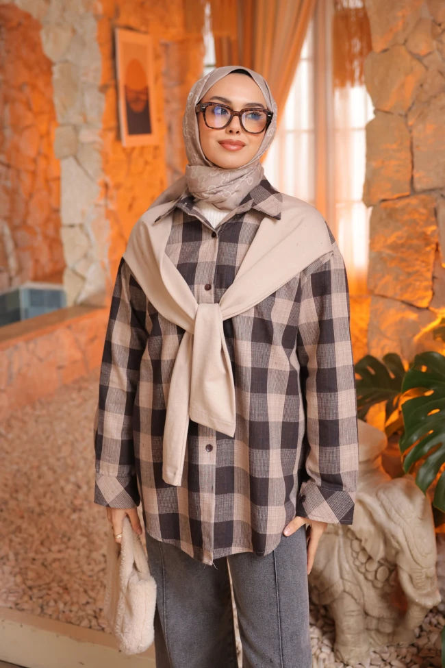 Siyah Atkı Detaylı Garnili Ekose Gömlek Bej Atkı Detaylı Garnili Ekose Gömlek Haki Atkı Detaylı Garnili Ekose Gömlek Antrasit Atkı Detaylı Garnili Ekose Gömlek