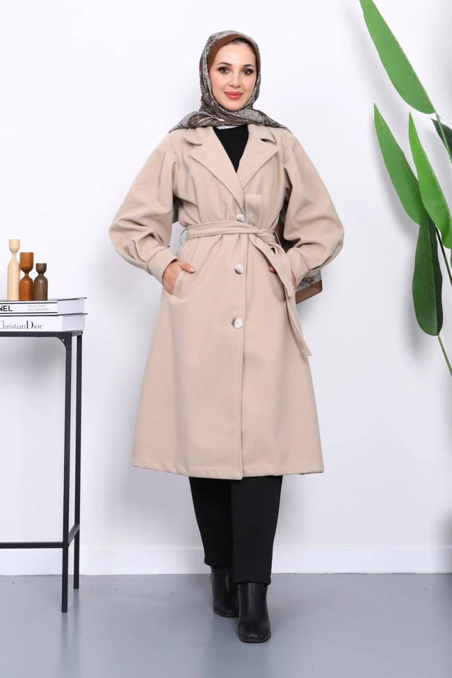 Siyah Balon Kol Bel Kemerli Kaşe Kaban İndigo Balon Kol Bel Kemerli Kaşe Kaban Krem Balon Kol Bel Kemerli Kaşe Kaban Camel Balon Kol Bel Kemerli Kaşe Kaban Gri Balon Kol Bel Kemerli Kaşe Kaban