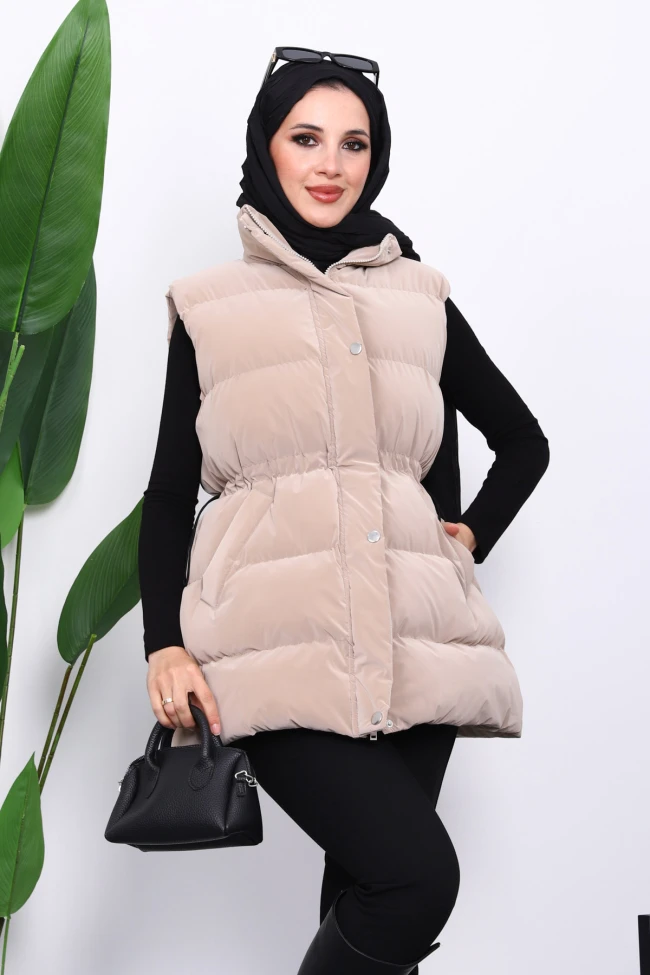 Bej Bel Lastikli Cepli Şişme Yelek Siyah Bel Lastikli Cepli Şişme Yelek