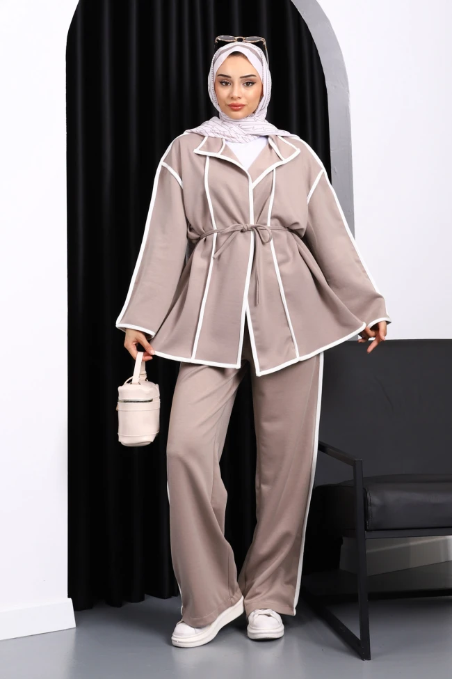 * Ürün Detay : Ürünümüz Modal kumaştan üretilmiştir. Ceket ile Pantolon ikili takım şeklindedir. Ceket bel kısmı kuşak detaylıdır. Pantolon bel kısmı lastiklidir.